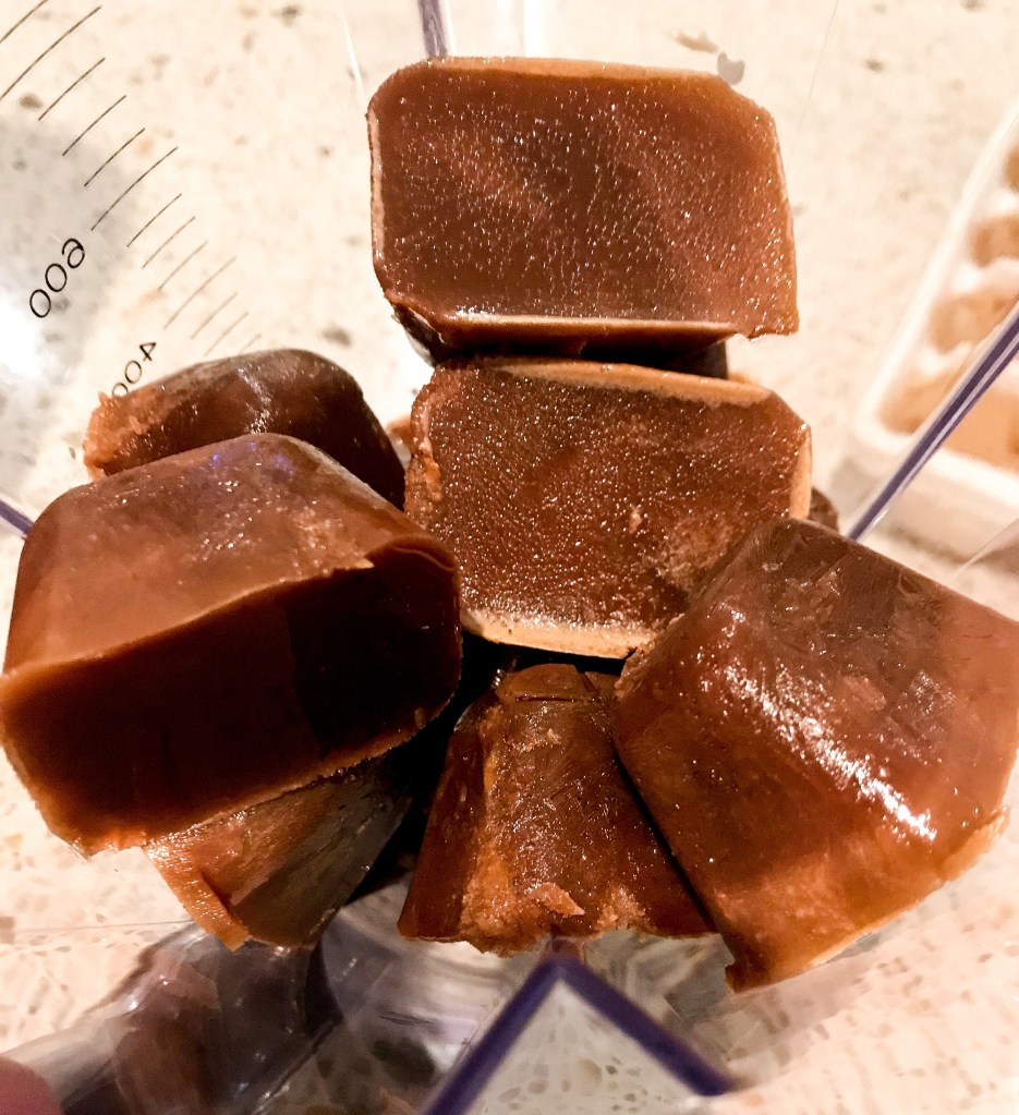 2. Pour the coffee mixture into the ice cube tray and freeze for 2hours or until frozen.